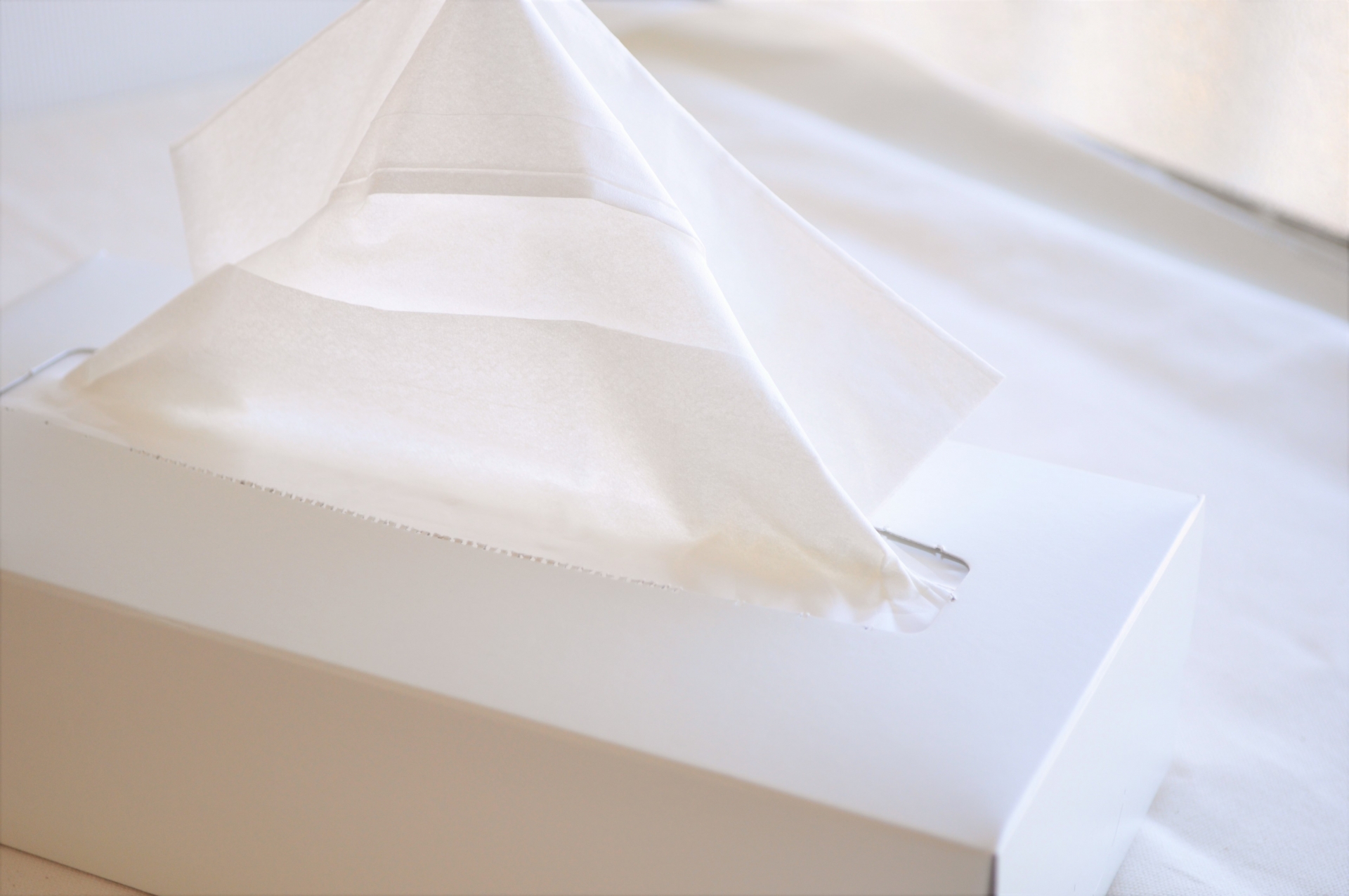 吸湿力の高いティッシュは、ふんわりと空気を含むような質感が特徴。触ったときにやや厚みを感じるタイプや、2枚重ねのタイプが特におすすめです。